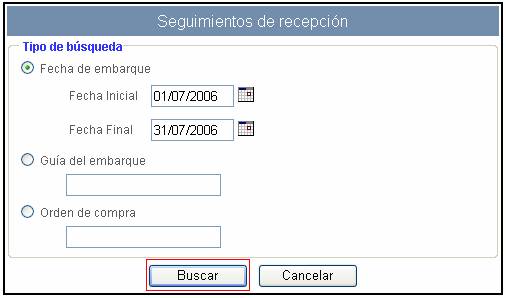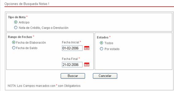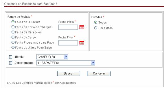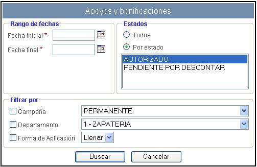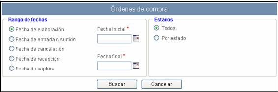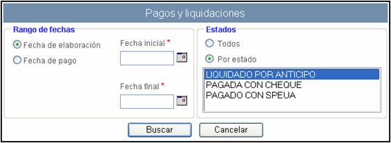 rango de fechas Inicial y Final que se incluirán en la búsqueda.