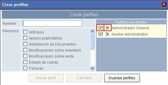 los nuevos perfiles, se pueden Editar o Eliminar haciendo Clic sobre los