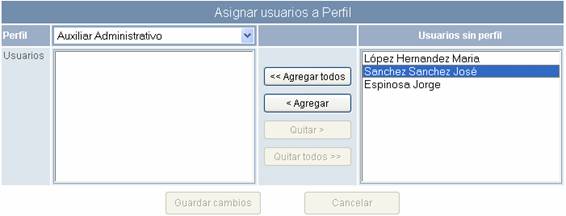 que se activa al seleccionar algún usuario sin perfil. Con las teclas