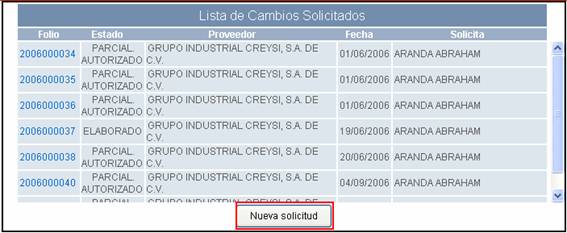 desplegará una ventana conteniendo la lista de cambios solicitados, con el