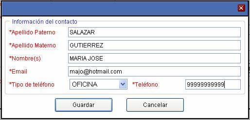 se desplegará la ventana donde capturaremos los datos del contacto.