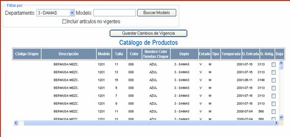 artículos vigentes. Si desea ver los artículos no vigentes, dar clic en el
