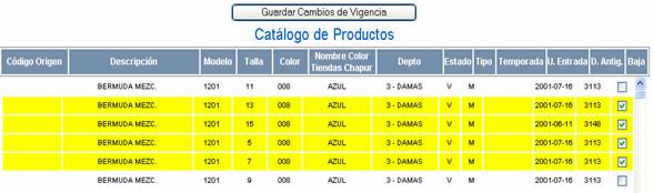 artículos, oprimir el botón Guardar Cambios de Vigencia, se desplegara una